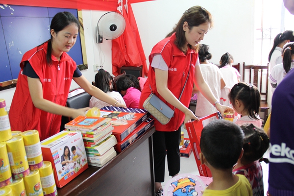 另外一組由團(tuán)委青年志愿者組成,在村委辦開展青春扶貧活動,為村上30余名留守兒童上了一堂別開生面的興趣活動課。志愿者們各展才藝,教孩子們跳拉丁舞、做手工彩繪,培養(yǎng)孩子們的興趣愛好,在與孩子們的溝通和互動中,建立了深厚的情誼。活動結(jié)束后,志愿者們將提前購買、籌集的愛心物資分發(fā)給了孩子們,其中包含文具套裝30套(含文具盒、圓規(guī)、尺子、鉛筆、橡皮等)、水彩畫筆30套、捐贈書籍80余冊(含少兒讀物、教育科普、少兒雜志等)。