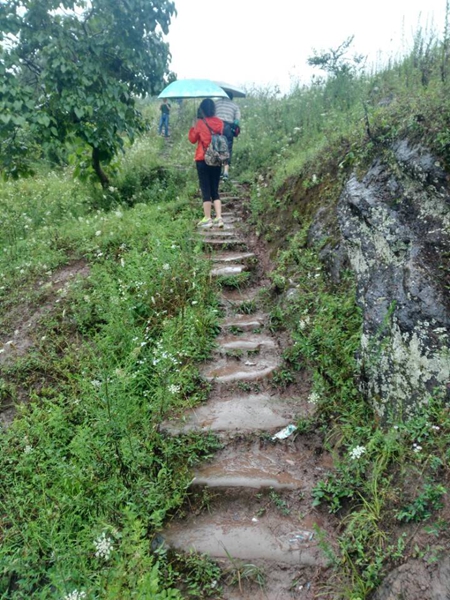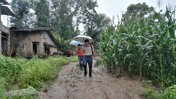 7月14日上午,慰問服務(wù)隊分成兩個小組開展扶貧工作,一組由朱書記帶隊,與施工單位負(fù)責(zé)人一道,冒著大雨,實(shí)地踏勘小石埡口便民路。此路起于沙壩場鄉(xiāng)平橋,終于石埡口村2社李家凹田,長度1.2公里,是學(xué)生上學(xué)、村民趕集的唯一步行通道,目前該路為泥石路面,寬度不足1米,路面崎嶇,步行艱難,一遇下雨,更是泥濘不堪,通行艱難。該便民路已被開江縣金準(zhǔn)扶貧聯(lián)絡(luò)辦公室確定為沙壩場鄉(xiāng)石埡口村2017年精準(zhǔn)扶貧項(xiàng)目,也是沙壩場鄉(xiāng)“一事一議”特批項(xiàng)目。為加快經(jīng)濟(jì)發(fā)展,促進(jìn)農(nóng)民增收,方便群眾生產(chǎn)生活,順利完成脫貧攻堅任務(wù),院黨委已同意給予資金資助15萬元。為保障扶貧資金使用到位,扶貧項(xiàng)目質(zhì)量過關(guān),朱書記一行與施工方在實(shí)地踏勘后細(xì)化、完善了便民路施工方案,并商議施工方案和預(yù)算需經(jīng)院、鄉(xiāng)村、和施工方三方同意后實(shí)施。